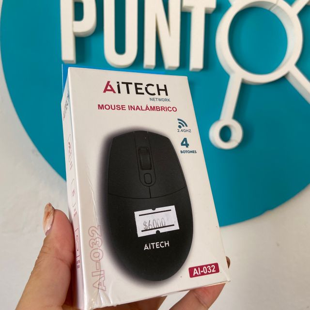 Mouse inalámbrico Aitech AI-032. Conexión 2.4GHz, 4 botones y diseño ergonómico para un uso cómodo y preciso. Ideal para trabajo, estudio o uso diario.