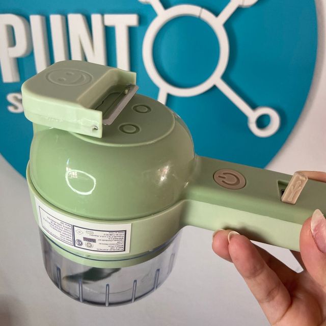 🥗 Ahorra tiempo y esfuerzo con este mini picador eléctrico recargable. Con accesorios intercambiables, corta y raya, con cepillo limpiador y pela papas. Todo en uno