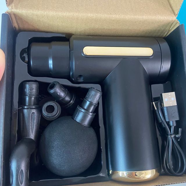Pistola de masaje recargable con múltiples cabezales intercambiables. Ideal para aliviar la tensión muscular y mejorar la recuperación después del ejercicio. Potencia y bienestar en un solo equipo.